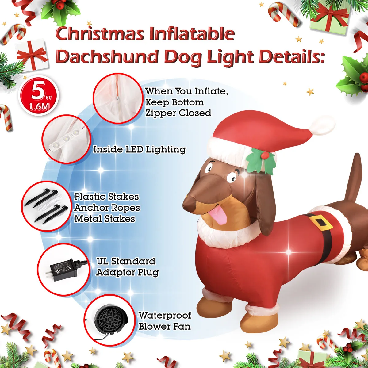 1.5m Christmas Inflatable Dachshund Dog LED Lighted Blow