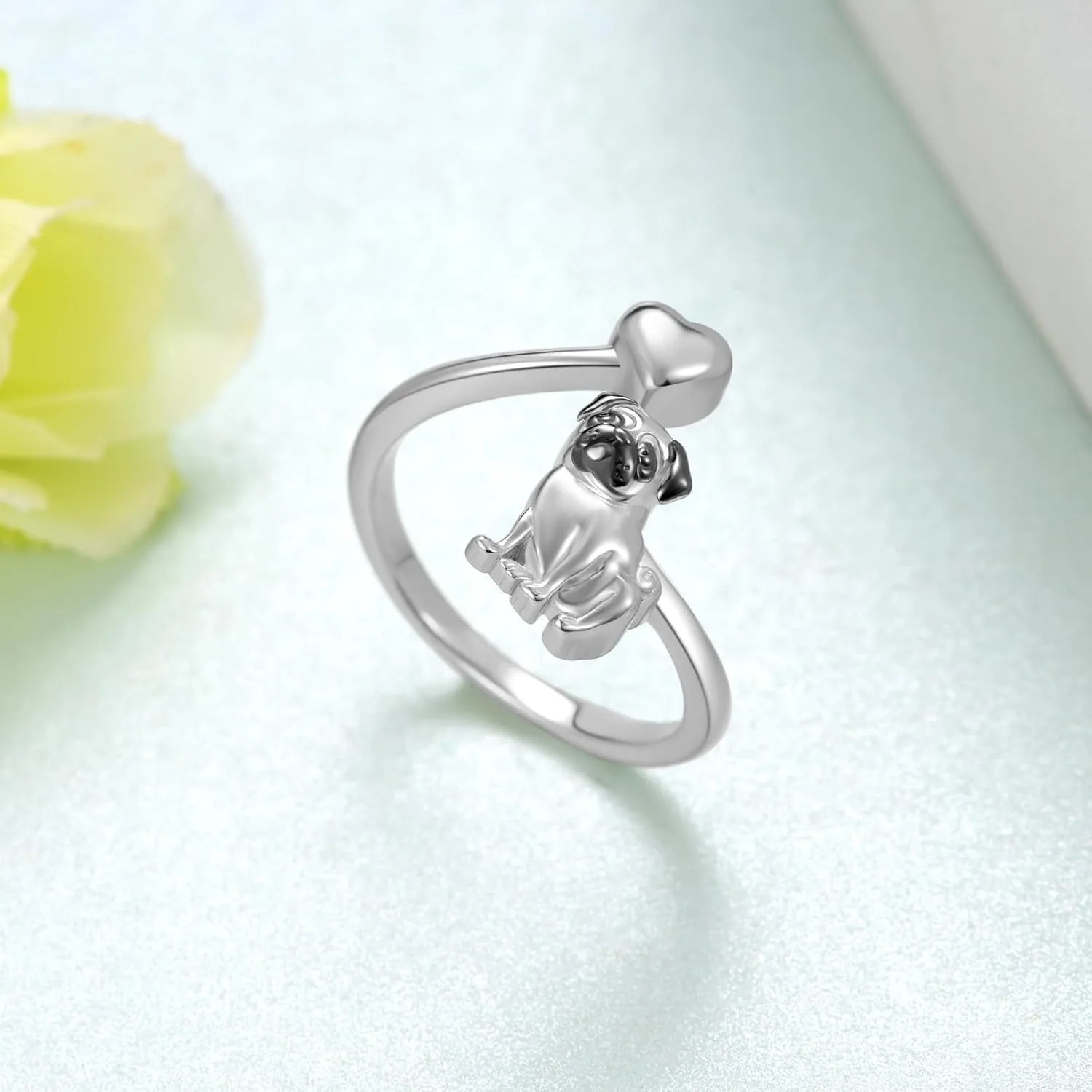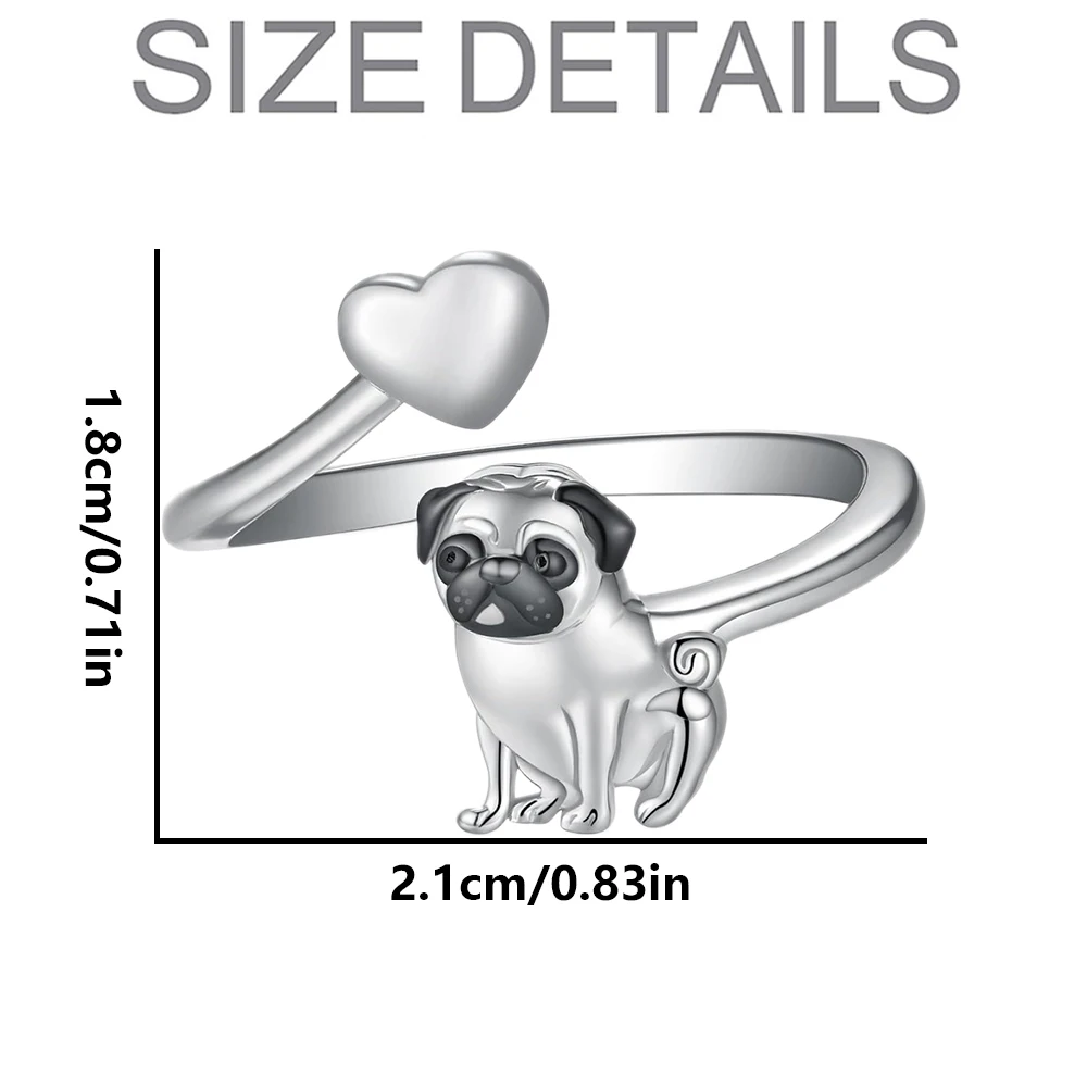 Adorable Pug Dog Design: Features a cute, finely detailed pug dog charm, perfect for dog and pet lovers.