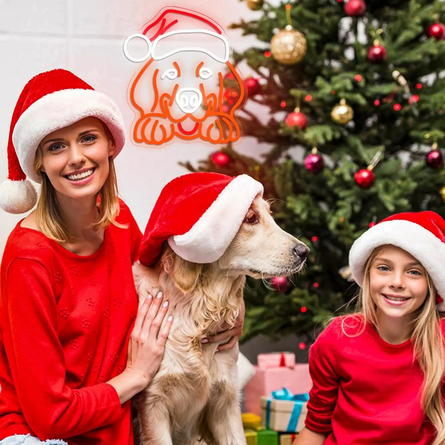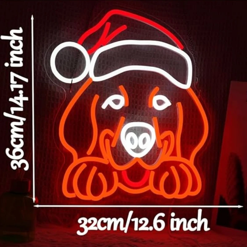 Christmas Hat Golden Retriever Neon Sign