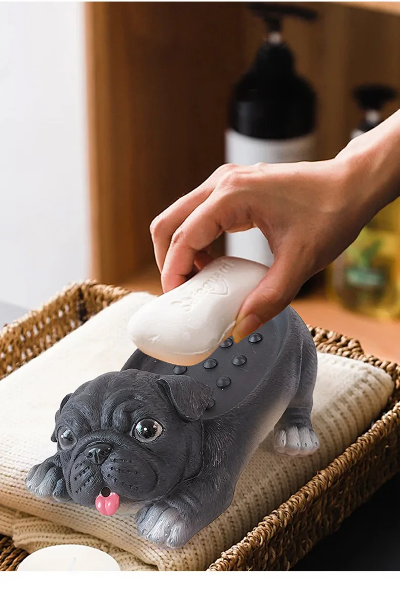 Soap tray: The pug's back is a hollowed-out section that serves as a tray for a bar of soap.